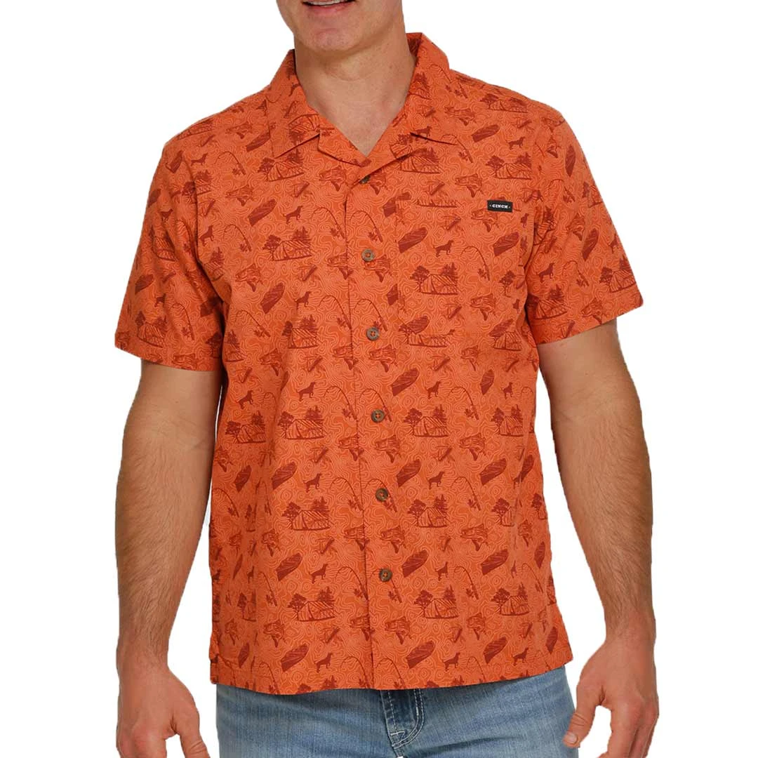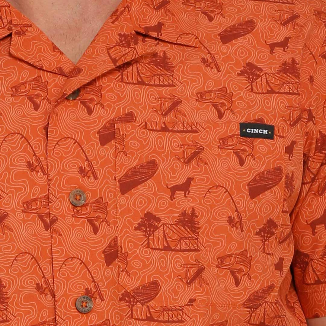 Cinch Men’s Camping Print Short Sleeve Camp Shirt