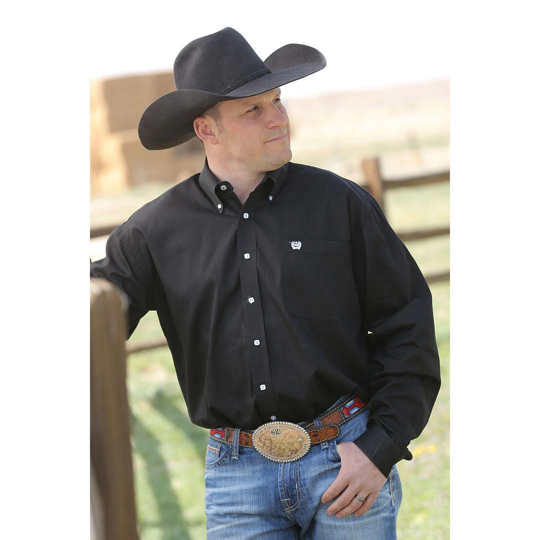 This solid shirt from Cinch has classic styling made from cotton. The front placket, sleeves, and button down collar are fastened with matching modern buttons. A single open pocket lays on the front keeping its traditional theme.