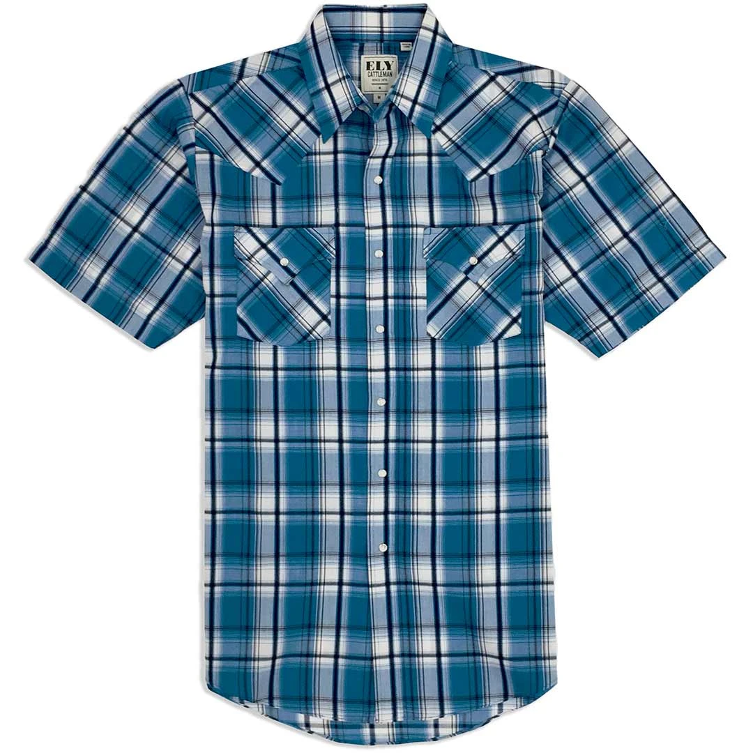 Ely Cattleman Men’s Short Sleeve Plaid Snap Shirt