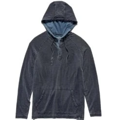 Simple yet sophisticated; lightweight yet warm; Flag & Anthem’s Chatham Burnout Slub Hooded Henley is ultra-comfortable, endlessly versatile, and easy to layer or wear on its own. Three-button front placket with adjustable drawstring hood; kangaroo pocket. Tailored athletic fit.