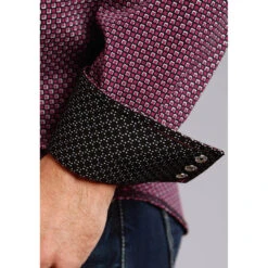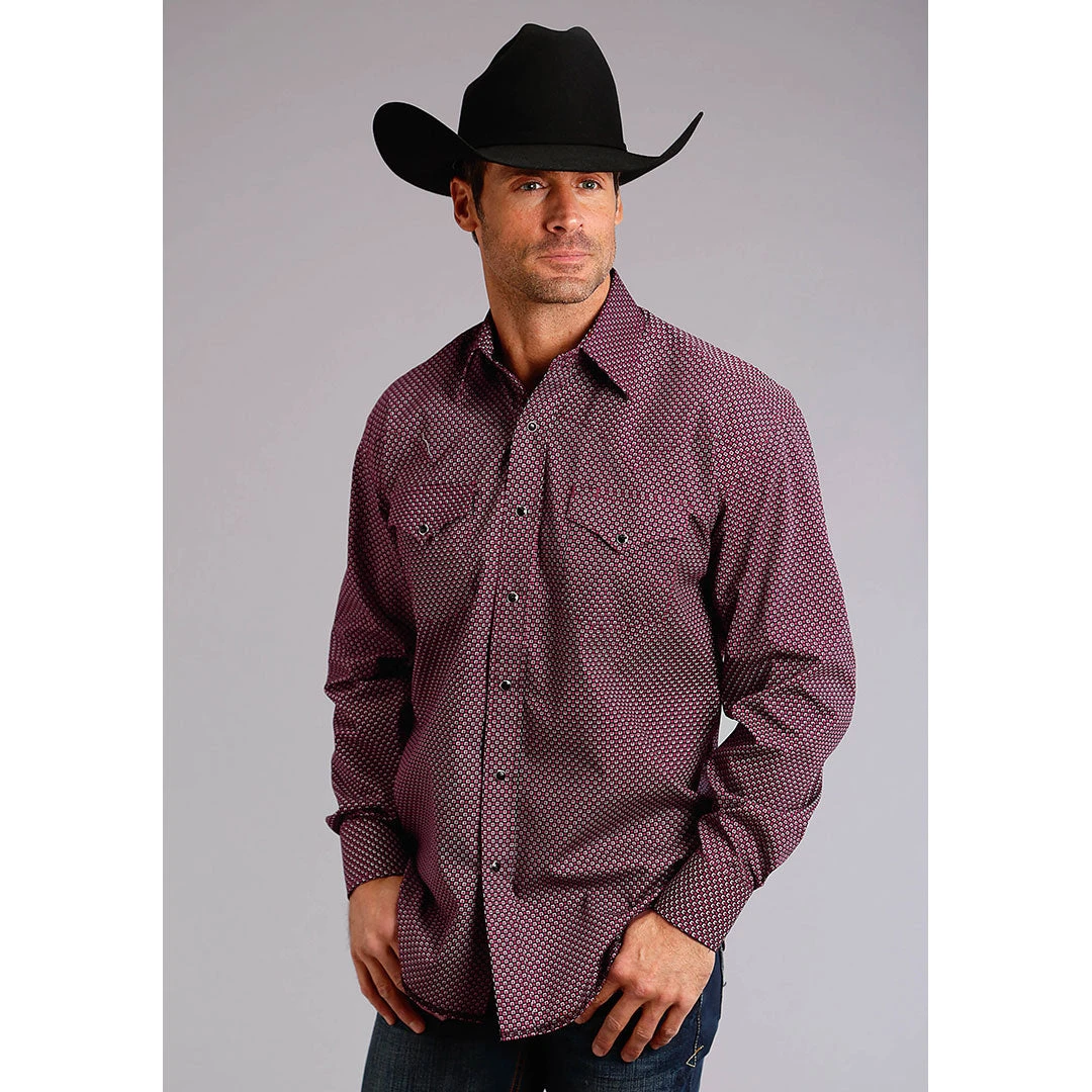 From Stetson, this geometric pattern shirt is just the ticket to a trendy look for the office and any evening plans you might have. The shirt features a deep yoke on the back, cover stitched hem, contrast trim on inside cuff and black pearl logo snaps.