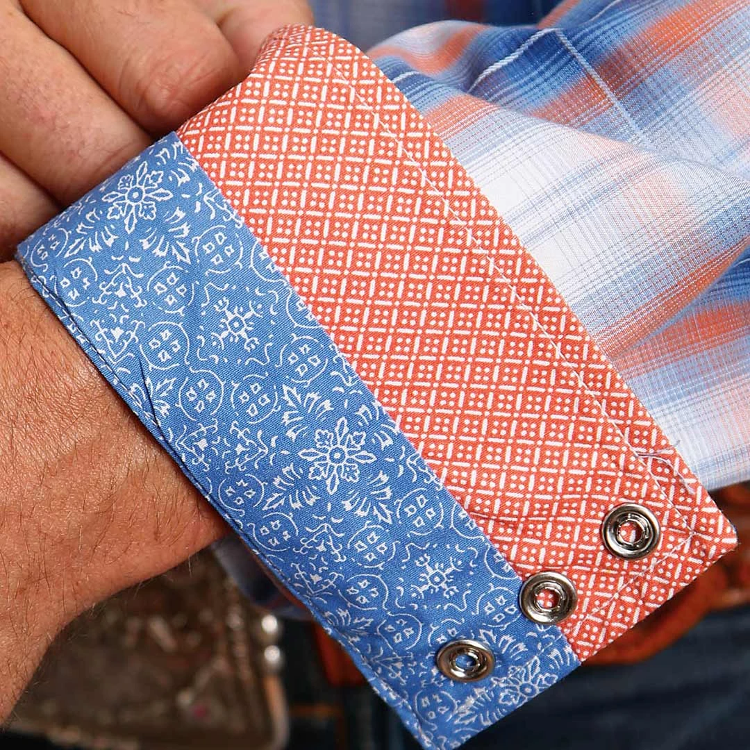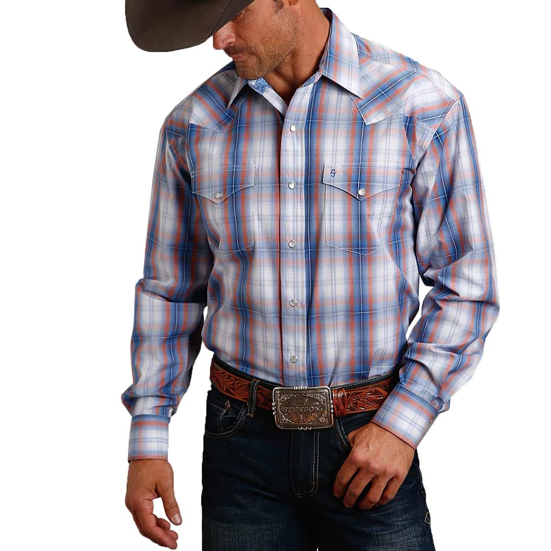 This plaid print men’s shirt from Stetson features curved pointed yokes, two snap flap pockets and contrast under cuffs. Perfect for the office or a night out.