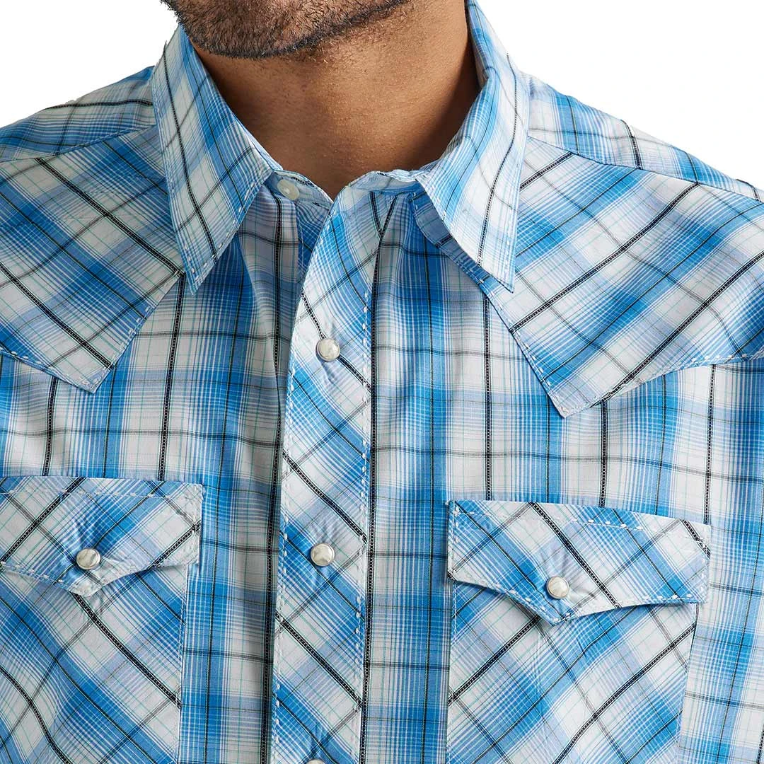 Wrangler Men’s Fashion Short Sleeve Windowpane Plaid Snap Shirt