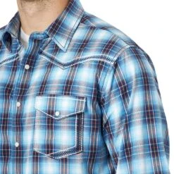 SKU: BGFTB 6929301340208 Category: Button/Snap Shirts Tags: Clothing, Clothing:men, Color:Blue, Department:Men, MRC429B, Price_type:Regular, SC_Men's_Shirts_Wrangler, Shirt_fit:Slim, Shirt_style:Snap, Sleeve_length:Long, Style_number:MRC429B, Supplier:wra
